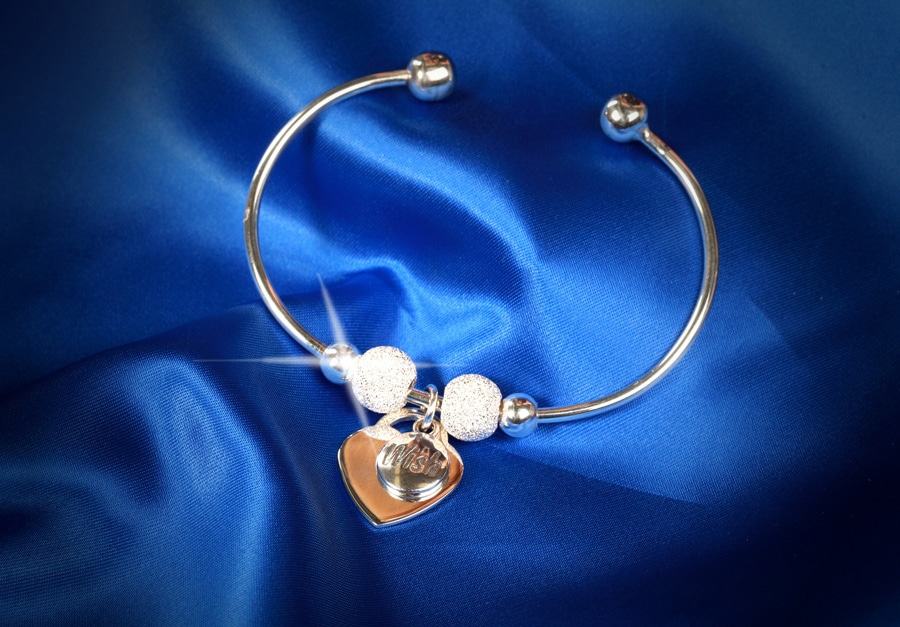 And since an 18 karat blue sapphire wasn’t available…we present you with your Tiffany inspired wish bracelet with lots of sparkle, featuring a heart and wish charm. The heart charm can be engraved later with your initials and date, and the wish charm is yours to make a request on your special occasion. After, wear the bracelet as a reminder that dreams do come true. Over time, you can add additional charms to commemorate special occasions, experiences and fulfilled wishes.