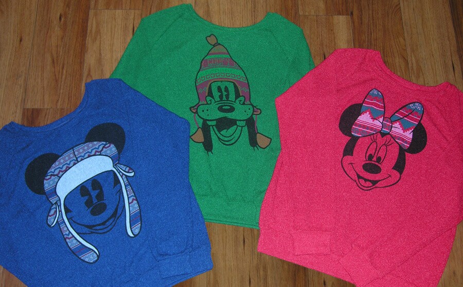 I loooooove these sweaters! I bought the Grey one with Mickey and Minnie last December while at Disneyland. They are so cute, and even cuter on. They were very popular! I think I saw at least six other people with them on. I really had to restrain myself from buying them all, but may have to grab one this year. They are all so cute, the decision was very difficult!