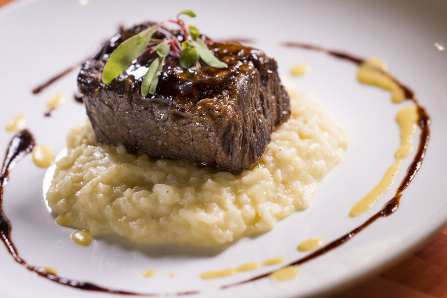 “Guests tell us we’re a hidden gem,” says Ashley. For years, we’ve headed to Captain’s Grille for lunch, and recently tried the new hand-cut salt and vinegars fries with roasted shallot mayo – good enough for a stand-alone treat, though delicious paired with the recently added lump crab cake with fire-roasted corn succotash and lemon emulsion. The kitchen, under Chef David Hutnick, turns out solid fare with a sophisticated touch, like house-made potato-cheese gnocchi with toasted walnuts, julienne pears and truffle butter, or rosemary-brined pork tenderloin with braised pork belly, pears and apples. And you’ll find one of the best sandwiches at Walt Disney World Resort here: the simple New England-style lobster roll on a butter-toasted Parker House roll.