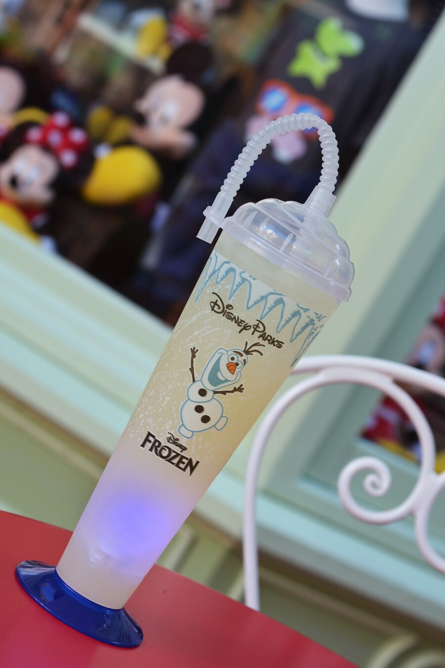 Some of our favorite food and beverage offerings have turned blue today – like the cotton candy and lemonade – to help us kick off the “Coolest Summer Ever.” Don’t forget to try the specialty cupcake, topped with blue buttercream and the 24-Hour Kickoff to Summer logo, available at Main Street Bakery and Gaston’s Tavern. Guests love the Olaf-shaped sipper, too!