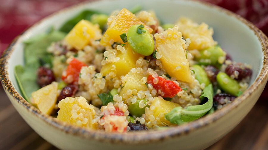 The newly revamped Gardens Kiosk, located on Discovery Island, features a Trek Power Salad with quinoa, beets, edamame and citrus as well as a Farmer’s Salad with blueberries, goat cheese and candied pecans. Both salads are eligible as a snack entitlement on the Disney Dining Plan. Also new to the menu is a chilled green tea infused with orange blossom honey, cucumber-mint-pomegranate lemonade, and raspberry lemonade sweetened with stevia.