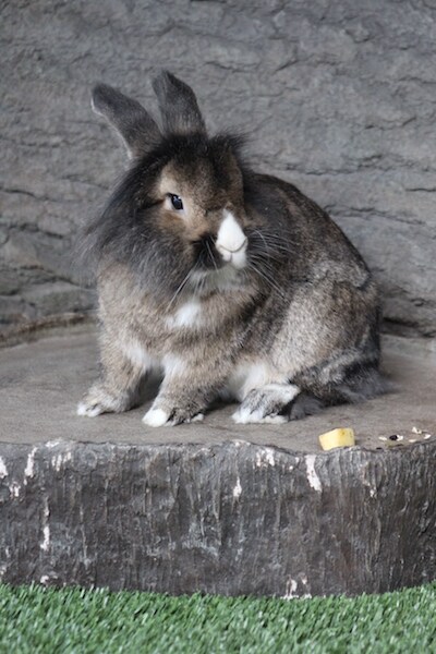 - Domesticated rabbits are herbivores and eat soft stems, grasses, flowers, fruits and vegetables.