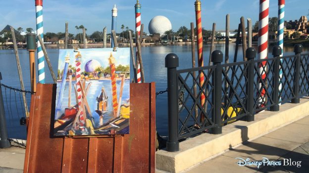 Earlier today, Disney Artist Will Gay stopped by Epcot earlier today to paint plein air (which in the art world means creating art straight from the field). Our cameras streamed the entire session live, right here on the Disney Parks Blog. (Watch the full replay here).